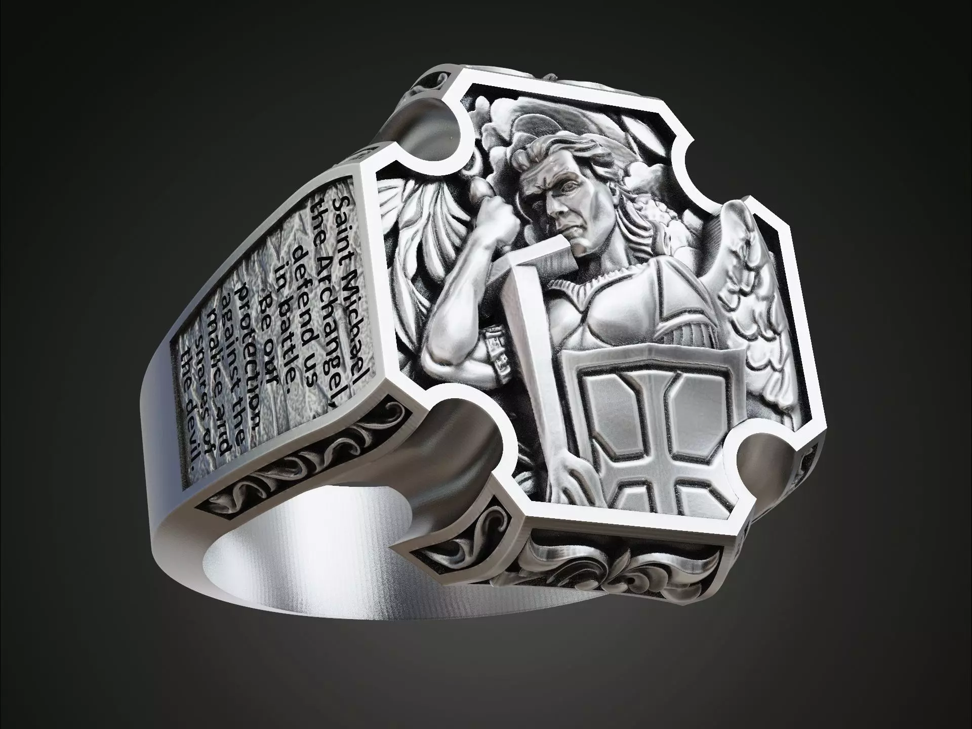 Saint Archangel Michael prayer signet ring 3D print model