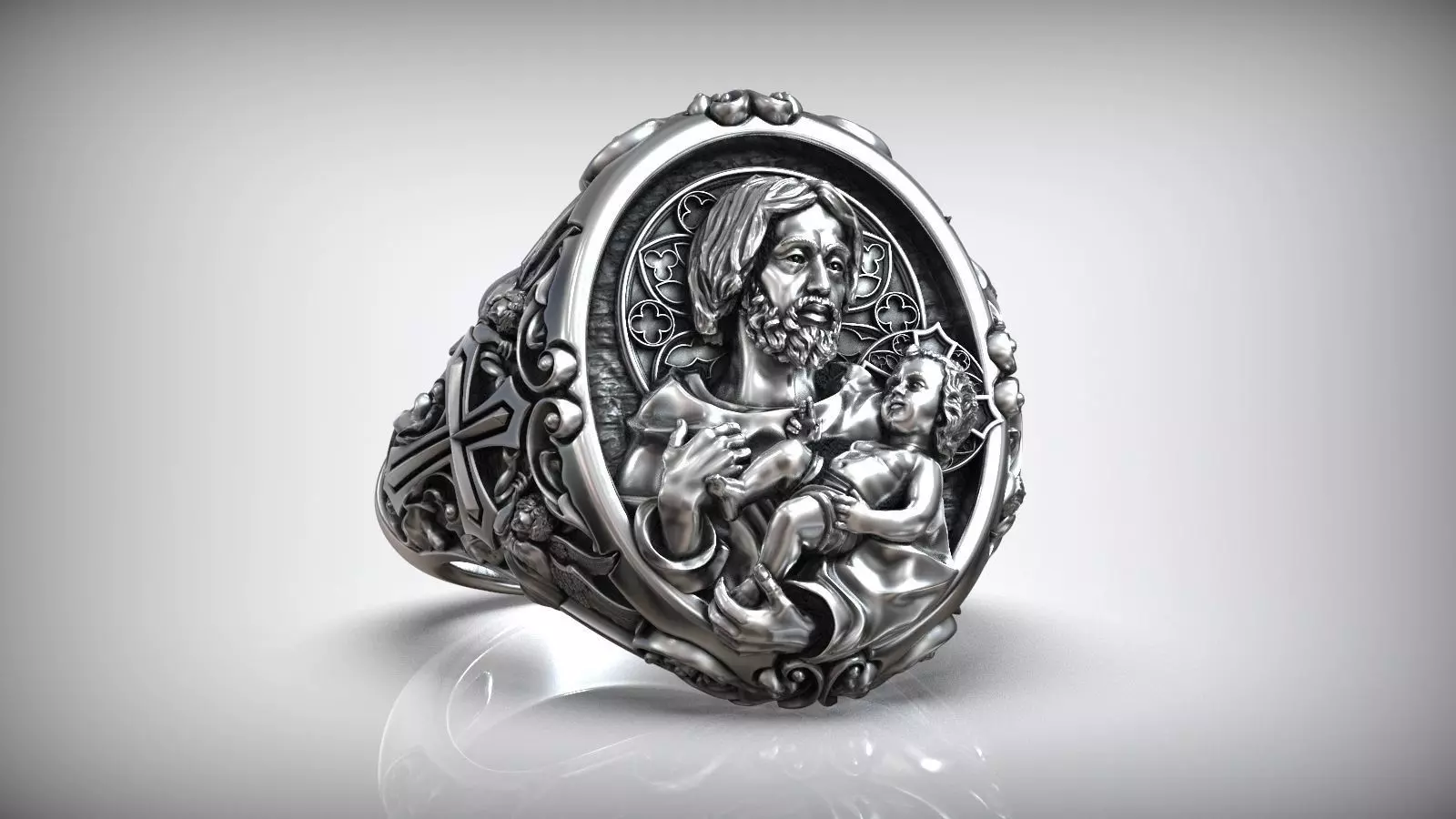 Saint Joseph and Baby Jesus Angels Gothic Cross Christian Ring