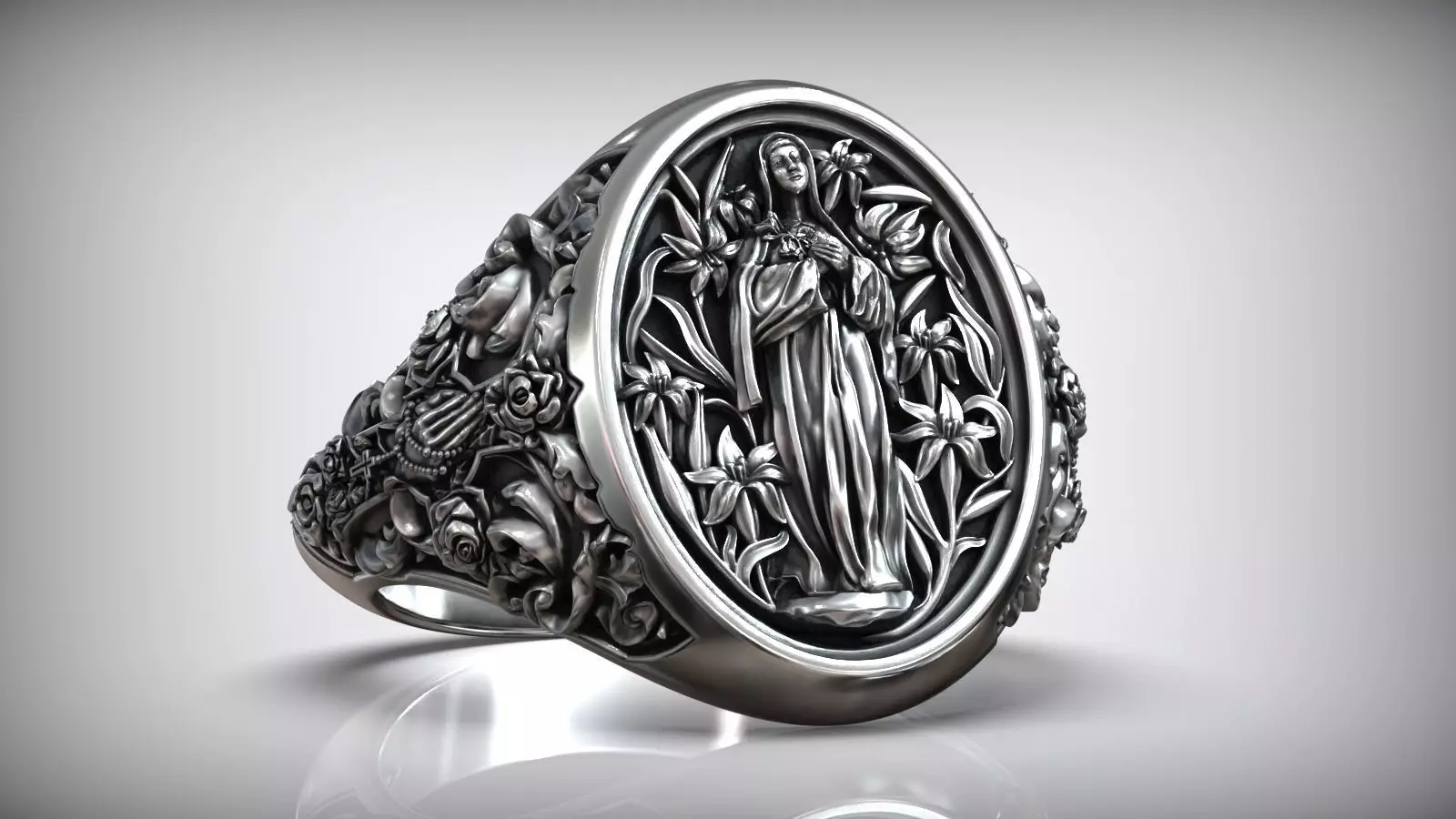Saint Mariana of Jesus de Paredes Cross Lily Christian Ring