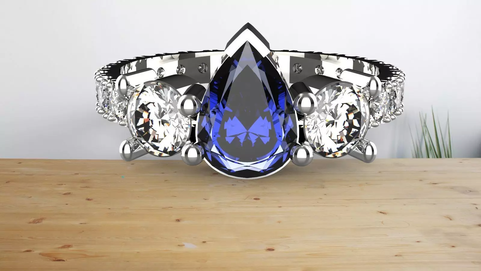 Q: How is the ring designed and visualized?A: Designed using Rhino 7, the ring is precisely crafted to meet the highest standards of quality. The design is then rendered in KeyShot 9, ensuring that every detail, from the shine of the diamonds to the depth of the colored stones, is brought to life in a realistic 3D model.
