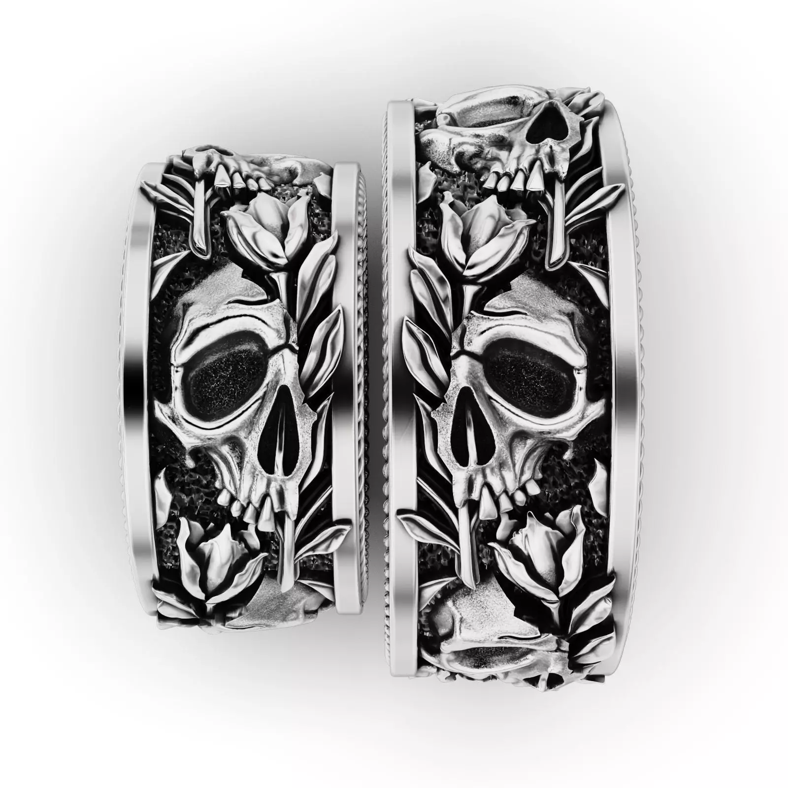 This highly detailed 3D model of a gothic skull ring blends macabre aesthetics with floral elements, making it perfect for those who appreciate dark, intricate designs. The model comes in two variations: one with 4 skulls and another with 6 skulls, allowing customization based on ring size and preference. The 4-skull version is recommended for US ring sizes 5-10, while the 6-skull version is best suited for sizes 10-14, but the choice is entirely yours. Designed for 3D printing and casting in precious metals.