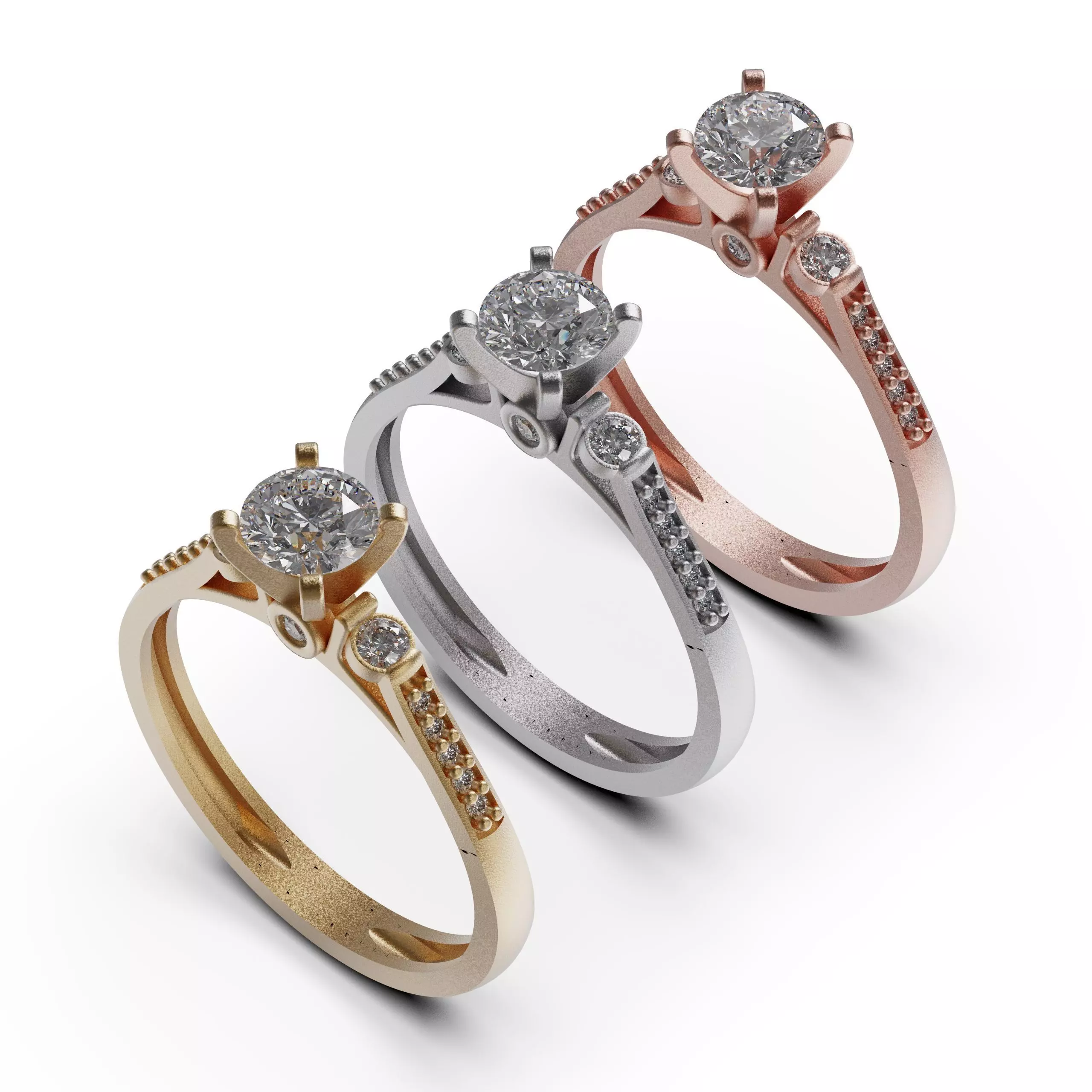 solitaire engagement ring gold with diamonds - lauren 3D print model