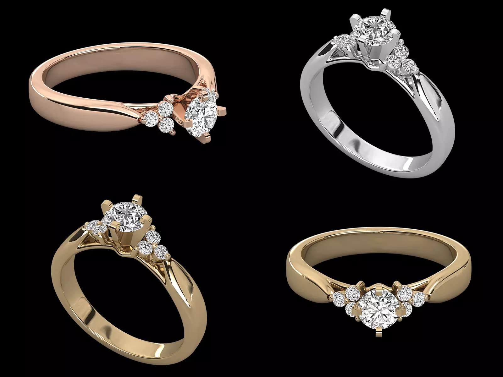 Design type: Solitaire ring with cluster side diamondsSide stone style: Round diamond clusterSetting type: Prong settingBand style: Smooth and elegant shankJewellery category: Engagement and fine jewelleryModel format: Editable CADFile formats: STL and 3DM