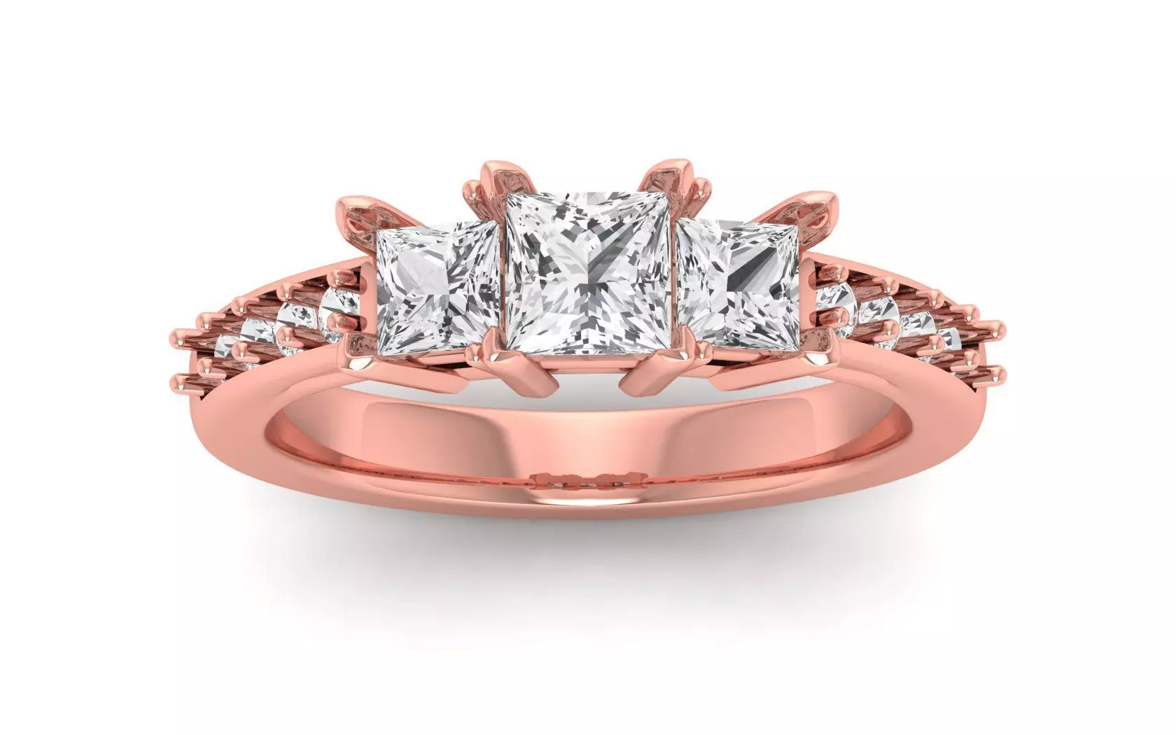 Three Stone Princess Ring Wedding Engagement Women Ring 3D print model