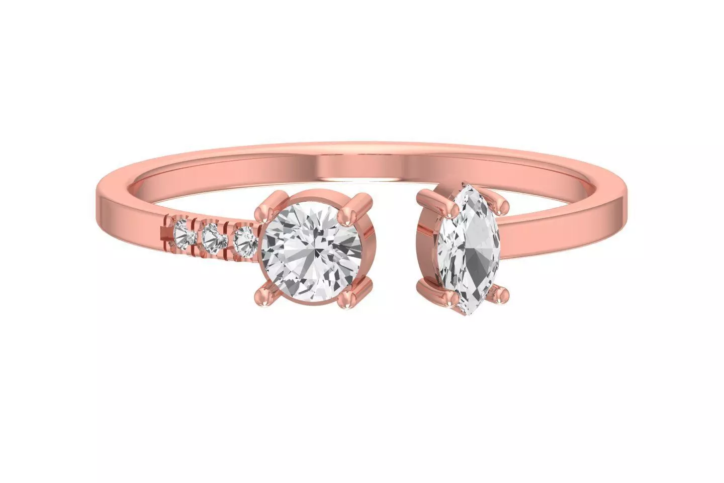 Solitaire Women Light Weight Marquise Round Stone Band Ring 3D print model