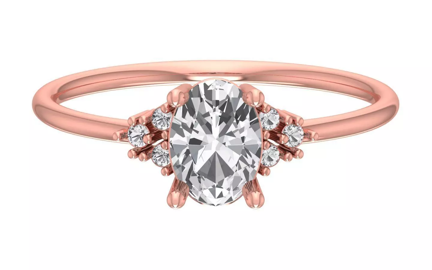 Solitaire Women Light Weight Oval Stone Band Ring 3D print model