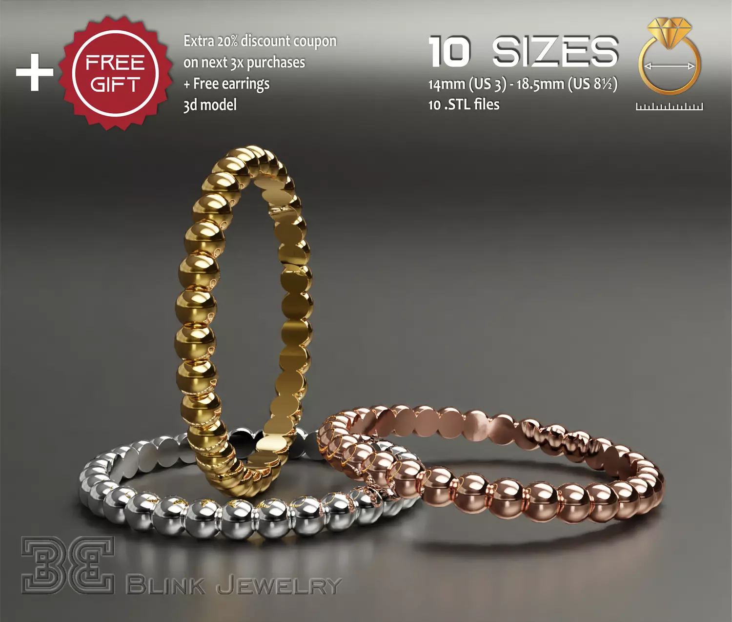 Thin, solid ring is perfect for stacking with other our delicate, tiny, plain, eternity rings and also with any of our geometric, minimalist wedding band set. rings or you can enjoy it on its's own. Our classic, dainty, thin and unique rings are suitable for daily wear.We recomend to cast these pack rings in 14k white gold ring, 14k rose gold ring, 14k yellow gold or in silver 925. It is up to you to chooe tone which is closer to your heart!!!Check out more unique stackable ring designs packs by link below https://www.cgtrader.com/3d-print-models?author=jewellerAB