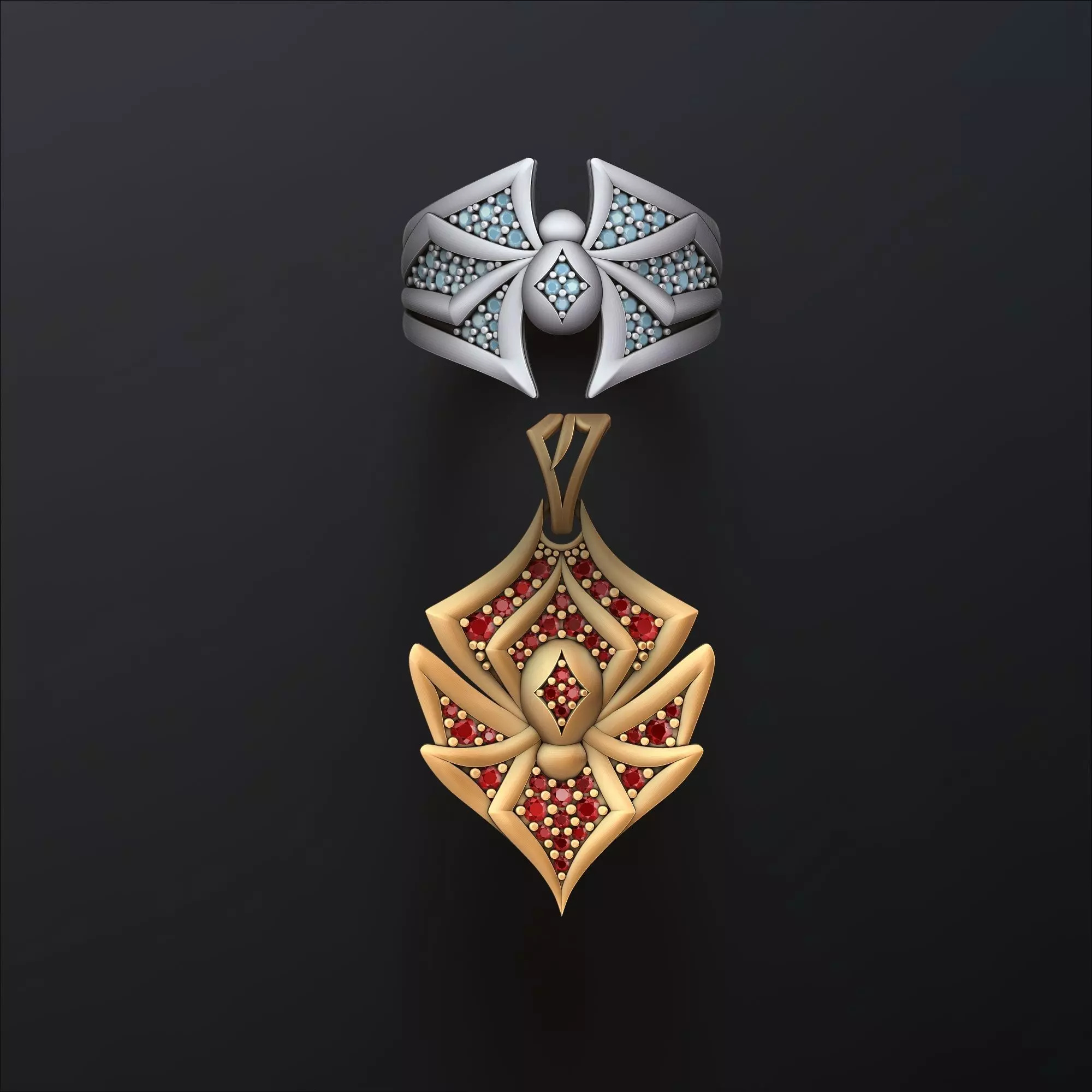 194.Spider pendant ring minimalistic with gems set 3D Print Models