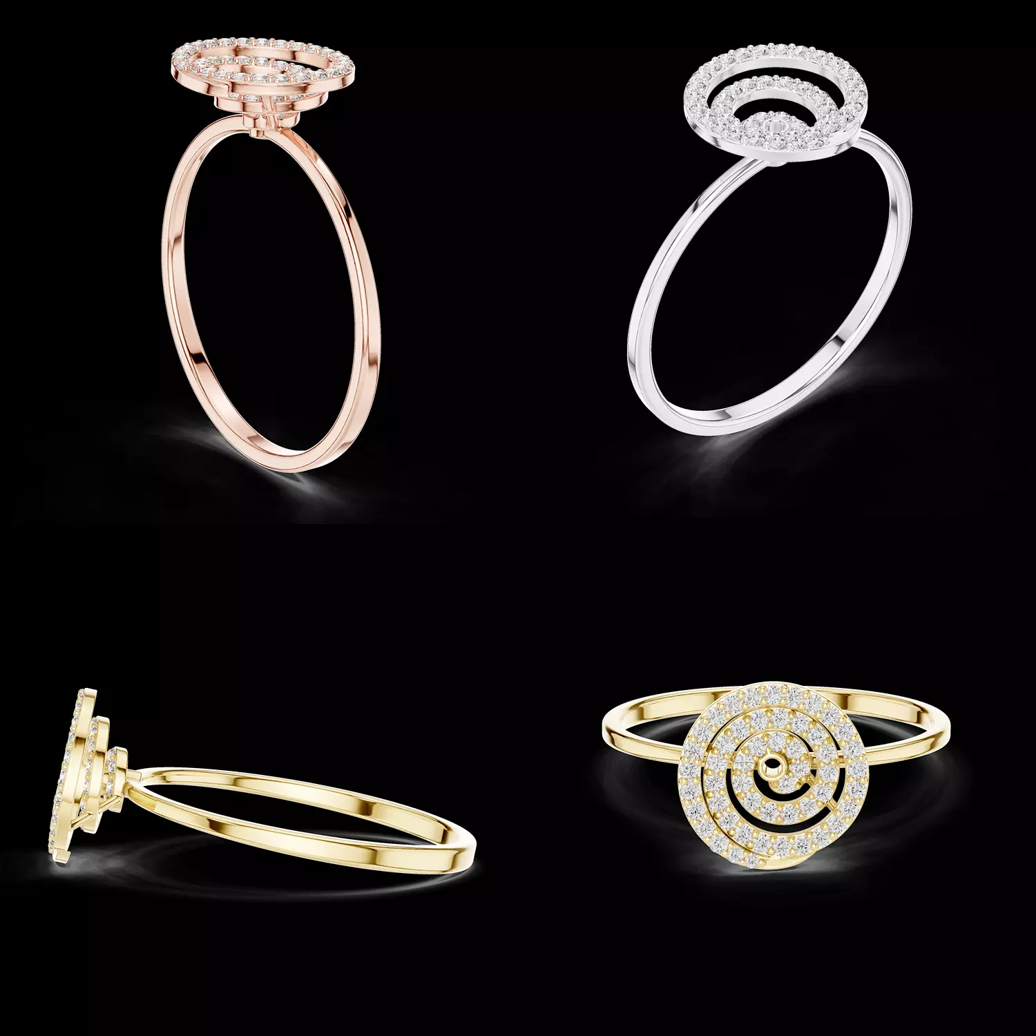 • Professionally designed jewelry CAD model• Spiral halo diamond design• Multi-layer circular diamond arrangement• Clean geometry optimized for casting• Comfortable and durable ring band• Suitable for gold and silver manufacturing• Easy to resize and modify for custom production