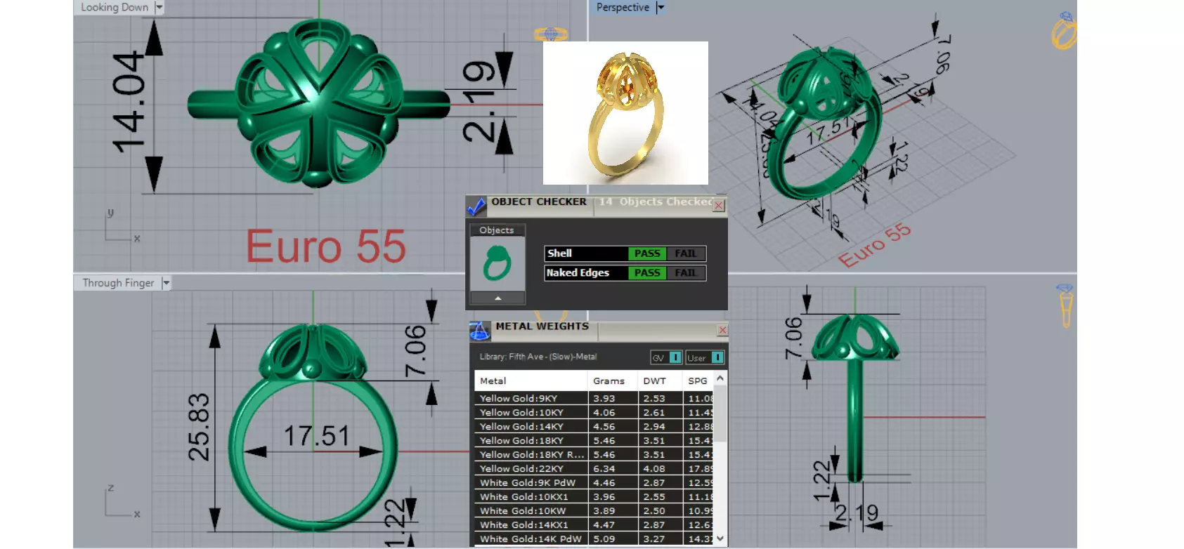 Gold Ring Dimensions: European Size 55. See detailed images or contact us