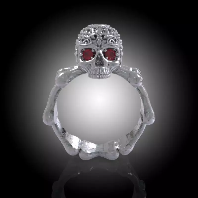 Stylish Skull Ring -Firenze Collection- Skull - Silver - Gold - Diamonds - RubyModel includes: Skull Element - Spacer