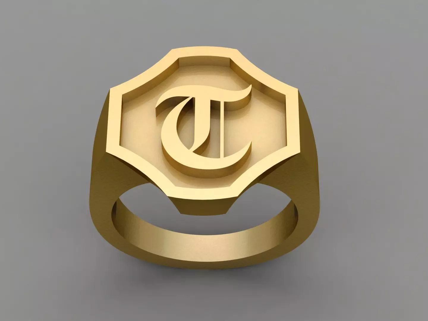T Letter Solid Gold Signet Ring Monogram Men Ring 3D print model