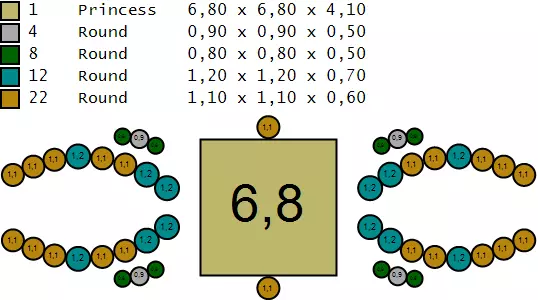 Diamond size and carat weight: you can check the diamond table attached in the picture