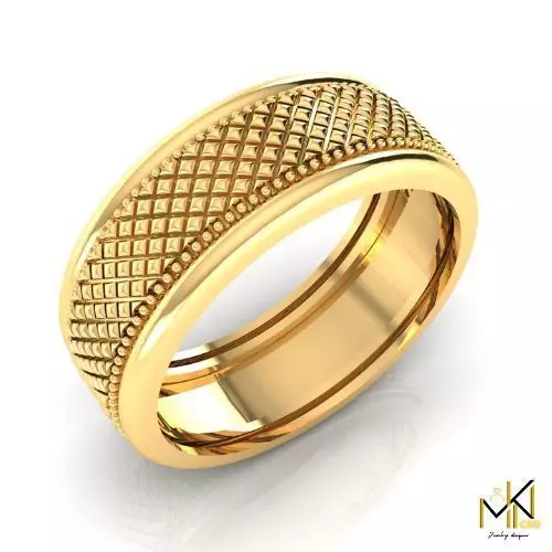 This high-quality gold band ring 3D model features a detailed crosshatch texture on the central band, bordered by fine beaded edges for an elegant and premium appearance. Designed with precision for jewelry designers, visualizers, and 3D printing enthusiasts, this model is perfect for use in product rendering, animation, AR/VR experiences, and custom jewelry prototyping.