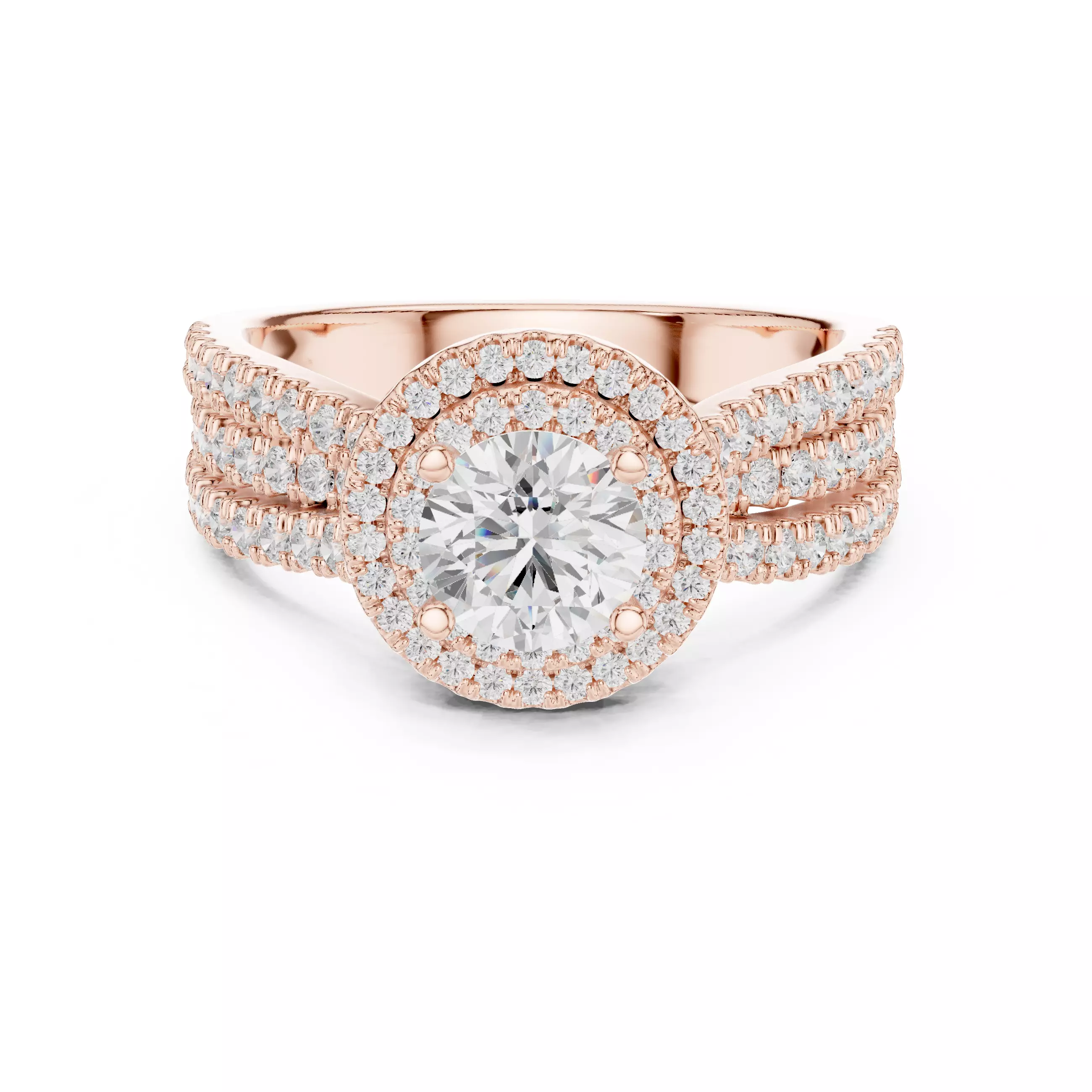 Three Crossover Band round Cut Double Halo Pave Diamond Ring 3D print model