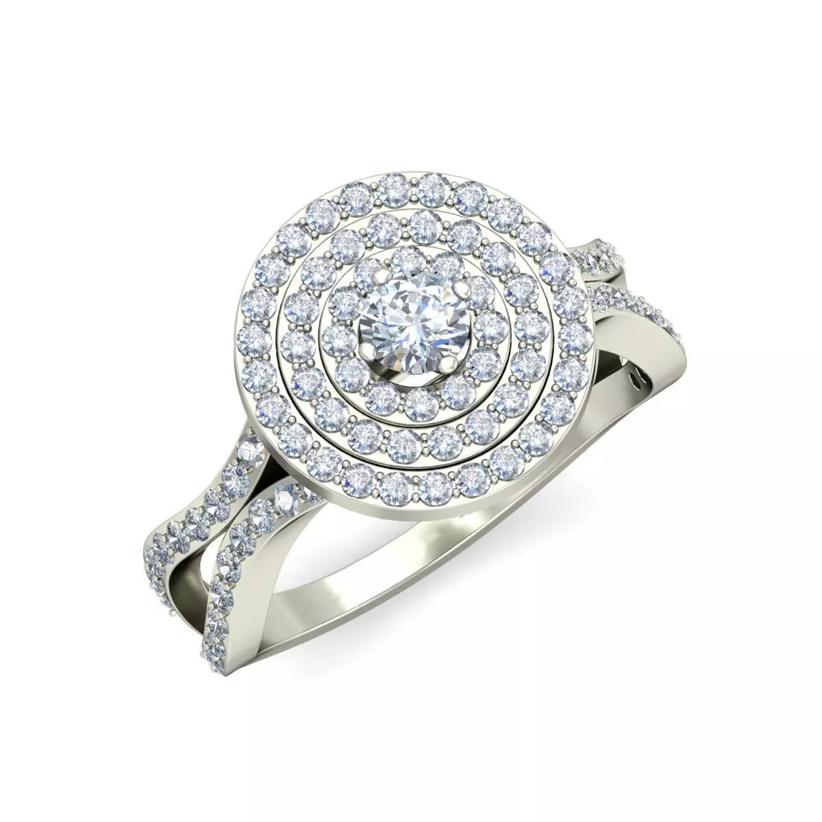 The Triple Row Halo Diamond Engagement Ring is a stunning piece of jewelry that exudes elegance and sophistication. This ring features three rows of meticulously set diamonds, creating a dazzling halo effect around the central stone. The halo enhances the brilliance and size of the center diamond, making it the focal point of this exquisite ring. Crafted with precision, the ring showcases exceptional craftsmanship and attention to detail, making it a perfect symbol of love and commitment. The triple row design adds depth and dimension, while the halo setting amplifies the sparkle, ensuring that the ring captures attention from every angle. Ideal for those who appreciate timeless beauty and luxury, this engagement ring is a true masterpiece.