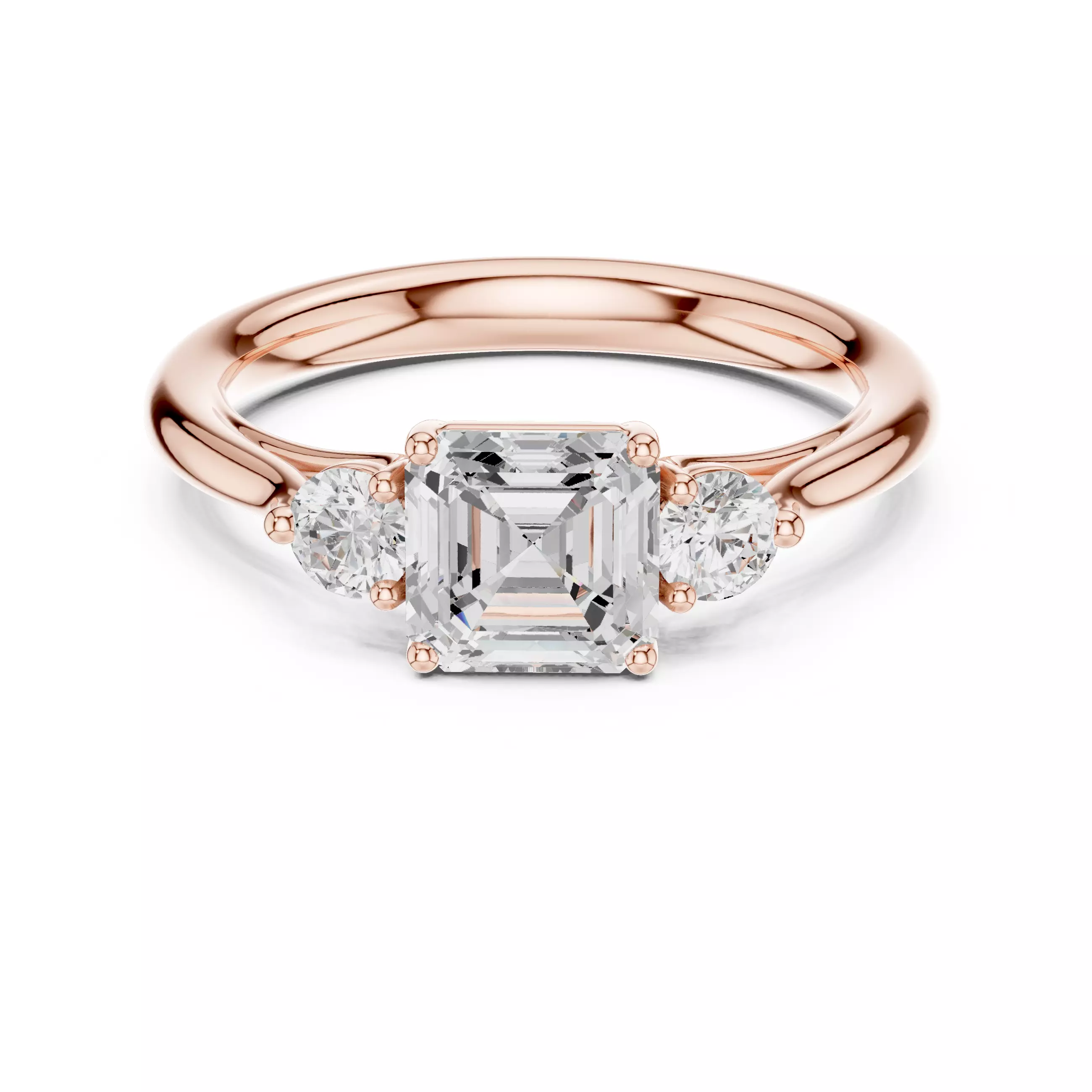 Three Stone Asscher Round Engagement Wedding Ring 3DM STL Video 3D print model