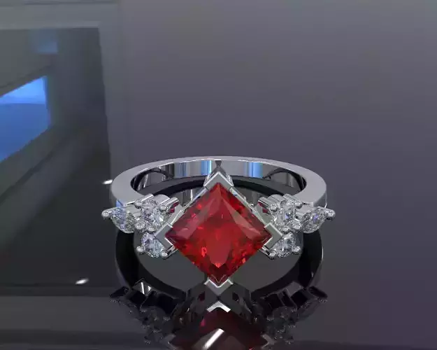 Additional Notes:-The ring features a classic three-stone design with a large, square-cut center stone and two smaller side stones.The side stones are set in a marquise and round shape, creating a visually interesting contrast.The ring is made of 14k white gold, which gives it a bright and lustrous finish.The ring is designed for a US size 6, but it can be resized to fit different finger sizes.