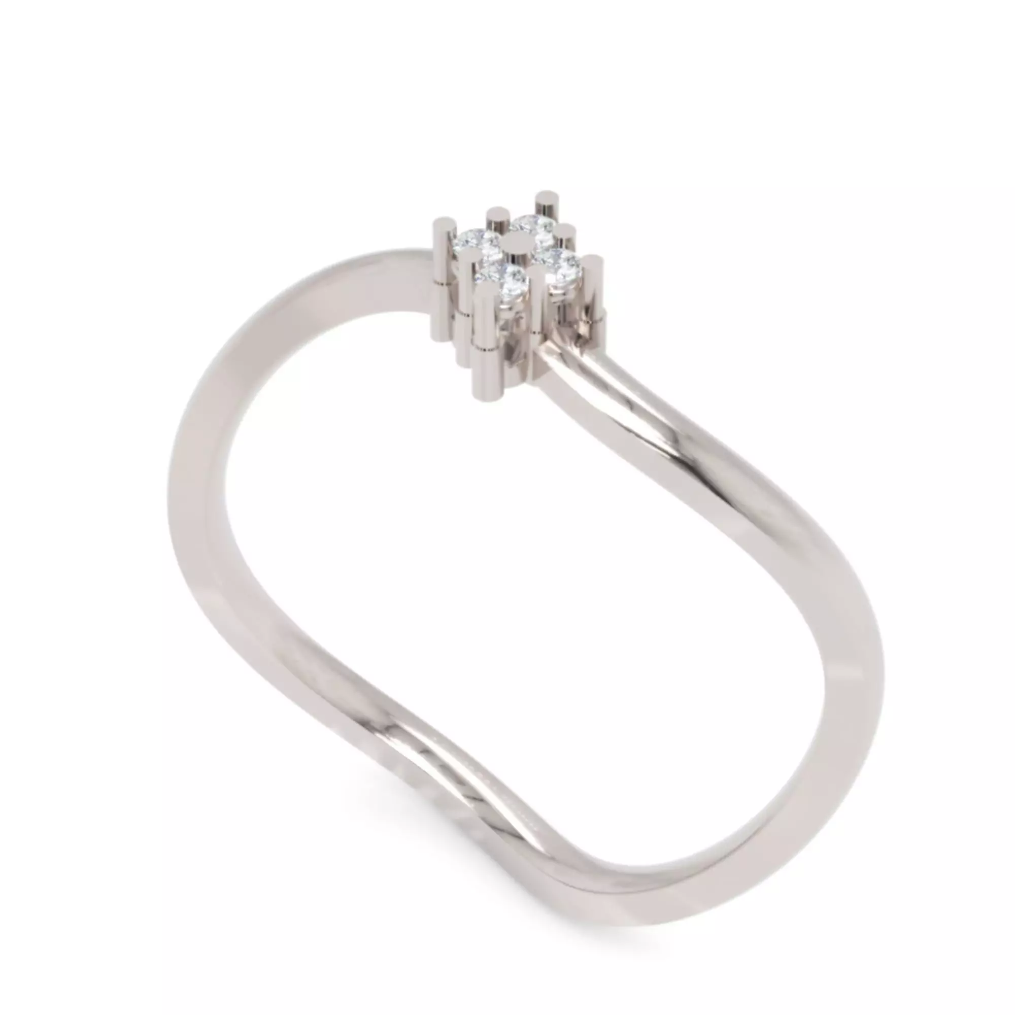 A graceful twist-shaped diamond ring featuring a refined band that subtly curves into a four-stone diamond cluster.This elegant form blends motion and balance, creating a timeless design that catches the light from every angle.