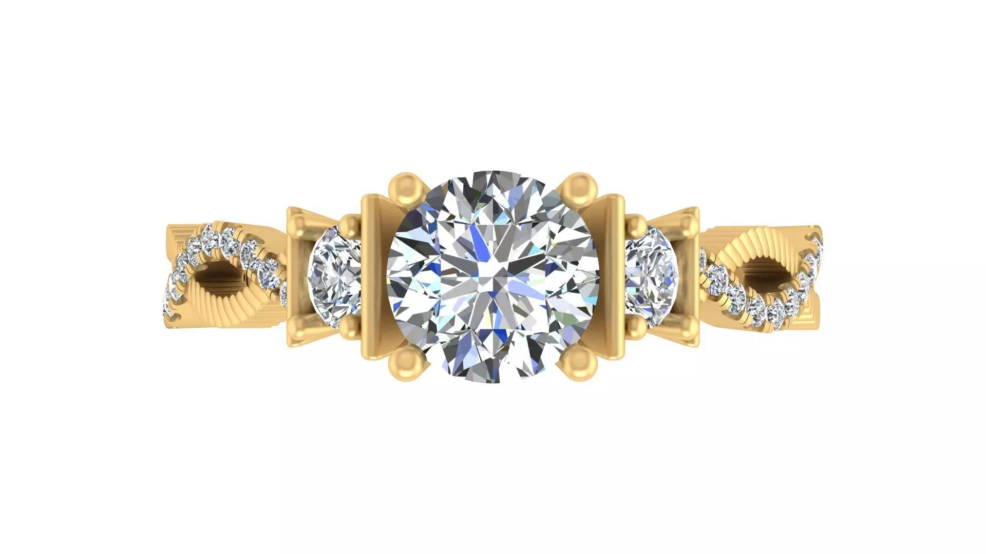 The intricate twisted band is adorned with pave-set accent stones, adding a delicate sparkle that complements the overall elegance of the ring. The interwoven structure creates a mesmerizing visual effect, making this ring a perfect combination of classic sophistication and contemporary artistry.