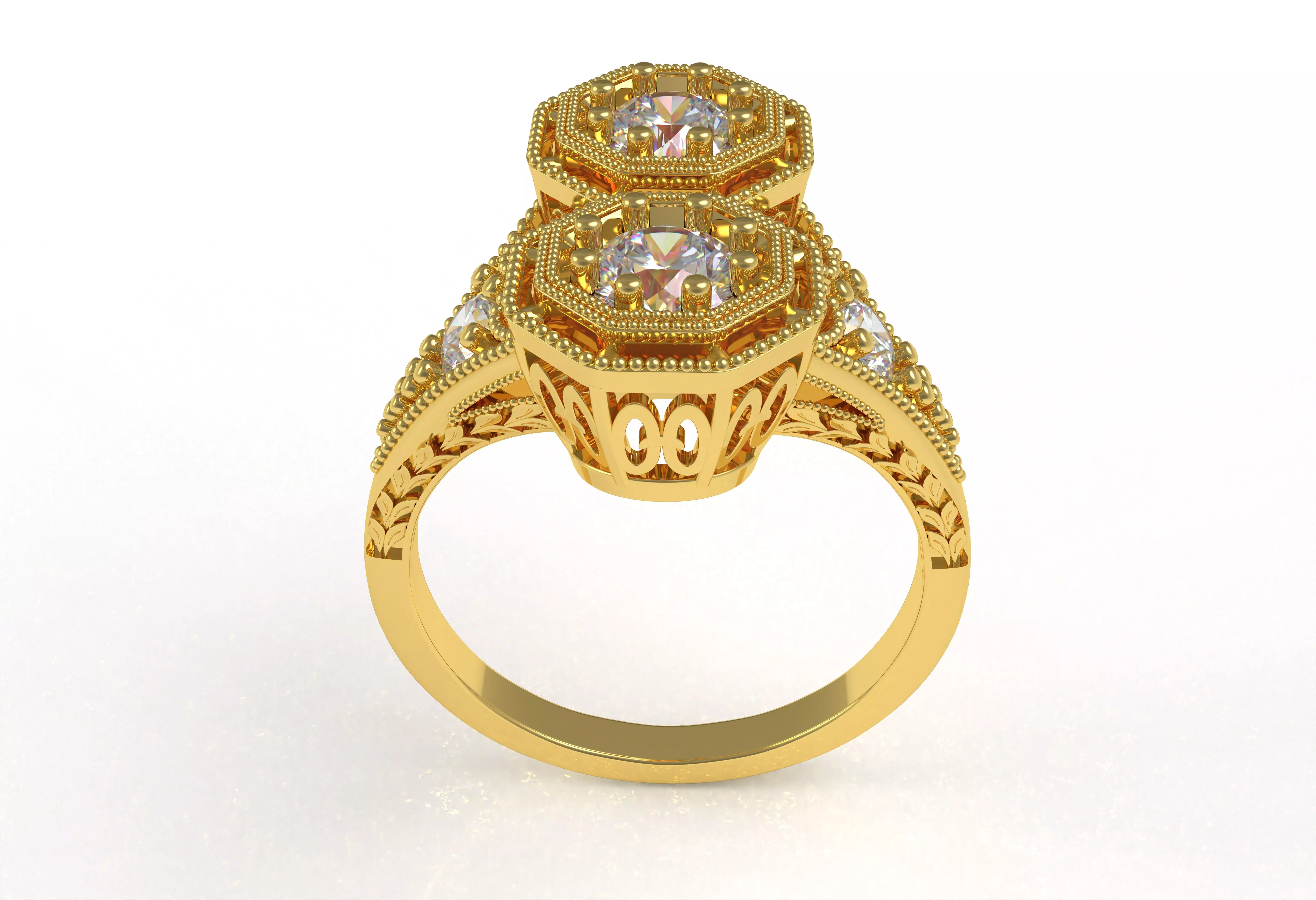 Two Stone Filigree Art Deco Ring 3D print model