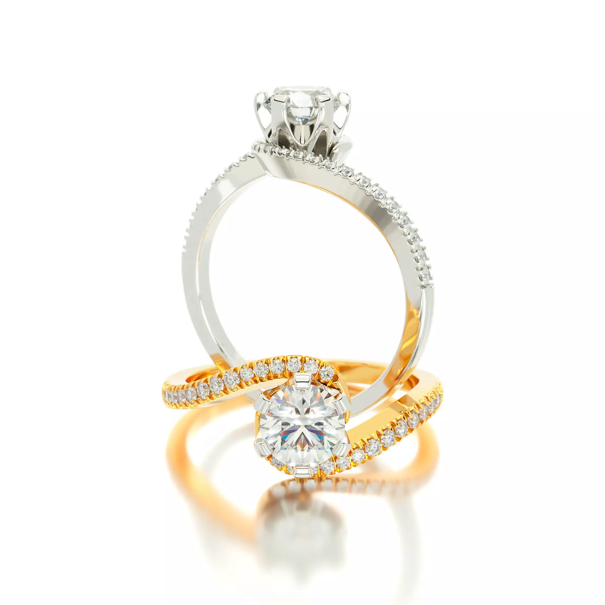 two tone gold engagement twisted ring with 5mm central stone 3D print model