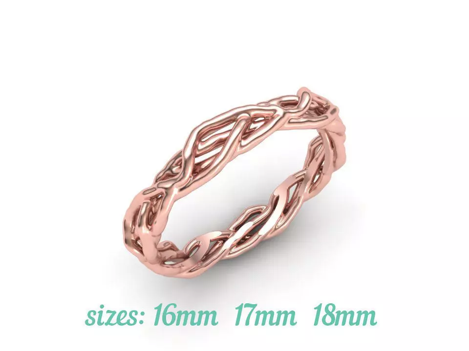 Unique Tree Branch Band-Ring Floral design printable 3d model Three Size of rings 16mm , 17mm , 18mm finger sizes weight: 2.1-2.35 gr in 14K gold File format: STL STL files without any supports (because each printer needed special supports )