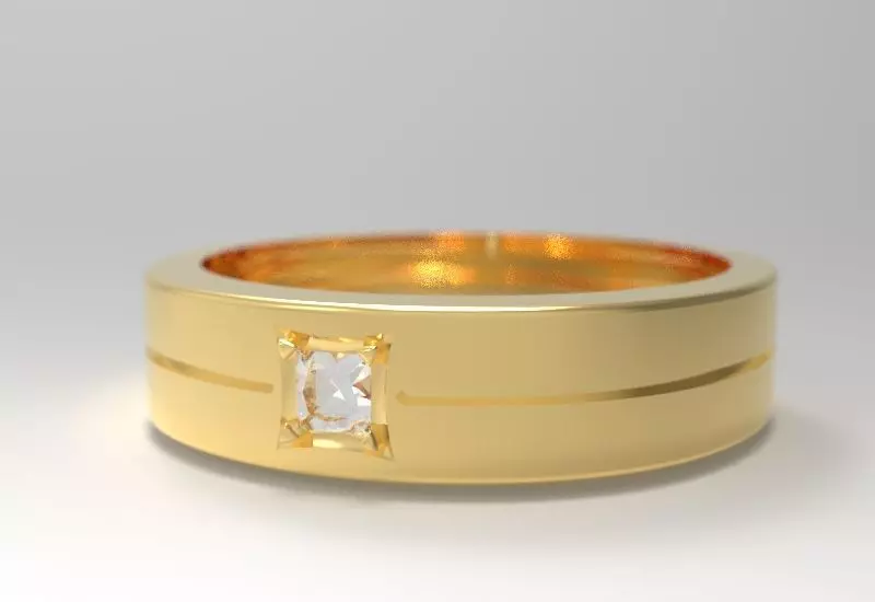 Unisex Gold Ring with Princess-Cut Diamond 3D print model