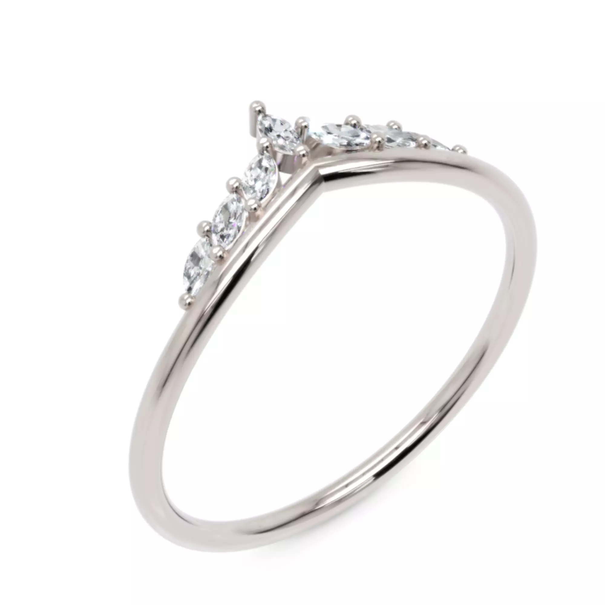This elegant V-shaped diamond ring features seven precision-set marquise stones forming a graceful crown silhouette.Perfect for stackable ring designs, engagement compositions, or fine jewellery collections, it combines minimal weight with refined brilliance.