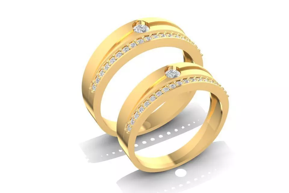 The design is versatile and stylish, available in yellow gold, rose gold, or white gold finishes. The sparkling pavé setting enhances the brilliance, while the single central stone symbolizes eternal love and unity. Ideal for wedding bands, promise rings, or anniversary rings, this set is perfect for couples seeking a blend of tradition and modern elegance.