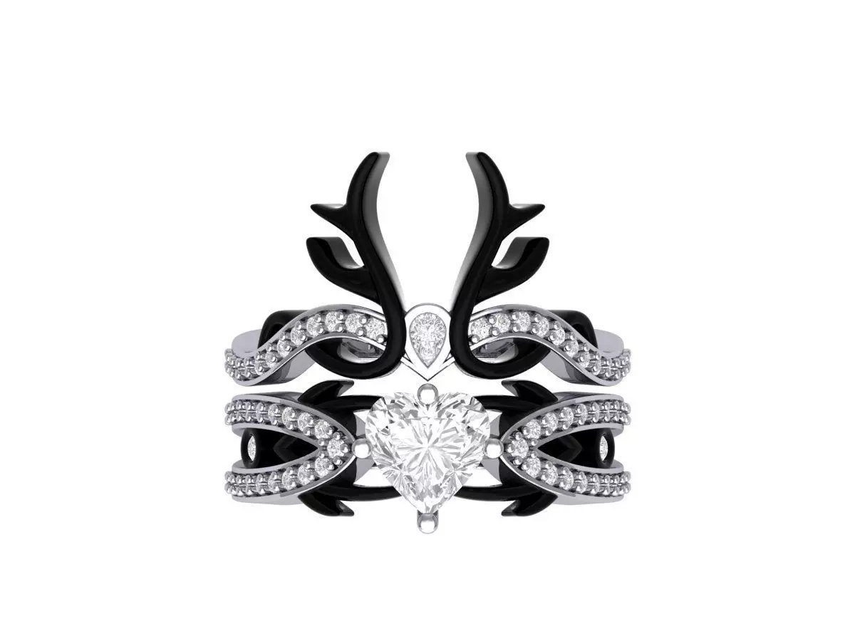 Heart Art Deco Ring Bridal Set 3D print model