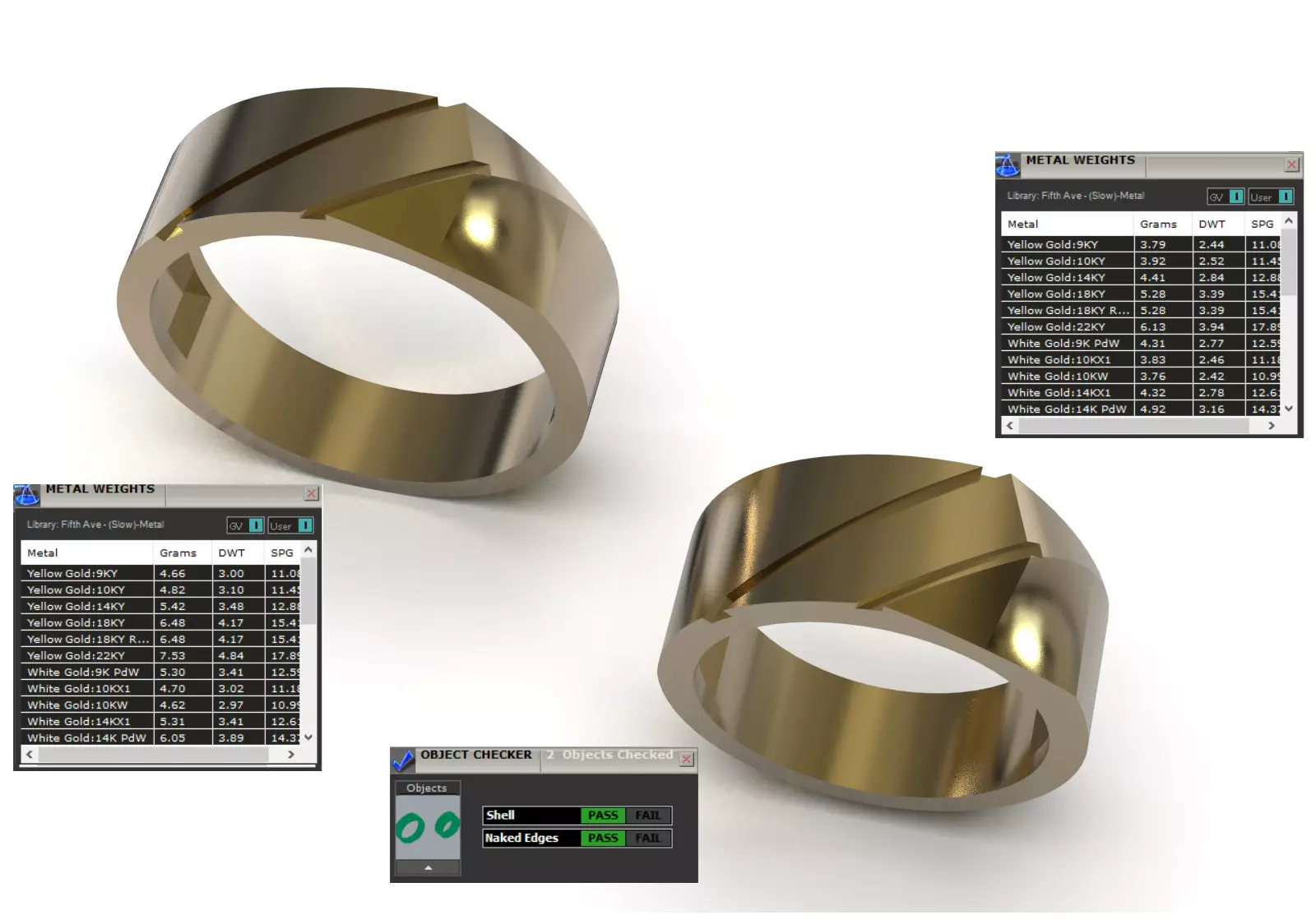 Overall Shape: Both rings feature a Wide, Thick, and Voluminous Band Form that creates a strong and sturdy appearance.