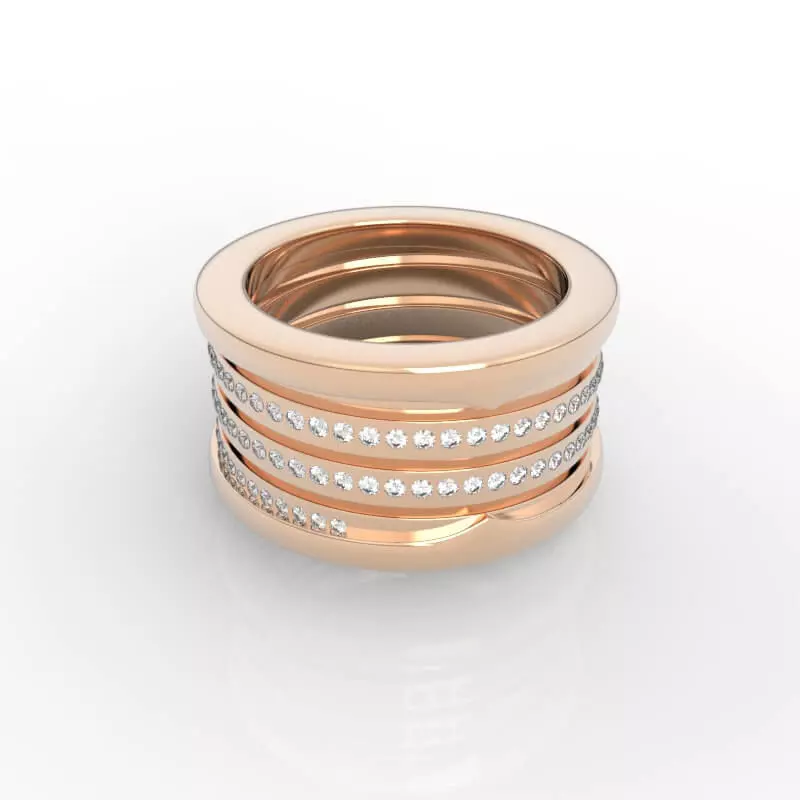 Meet the Wide Band Customizable Ring—a stunning, modern design with three rows of dazzling gemstones for a truly luxurious look. The innovative spring-loaded mechanism allows the ring to press and bounce back, enhancing both comfort and uniqueness. With its wide, smooth outer band, this ring provides the perfect engraving space for initials, dates, or personalized messages.