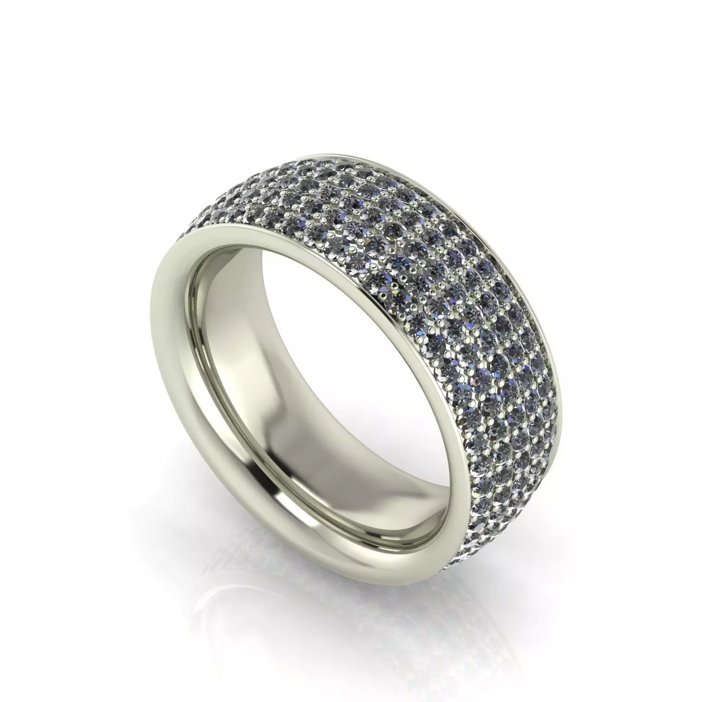 Pave Eternity Band or Cocktail Ring with five rows of round stones in a wide channel setting.