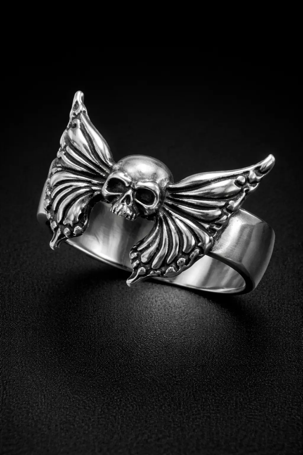 Embrace the beauty of transformation and mortality with this stunning Winged Skull statement ring. Crafted in high-quality oxidized silver for a vintage, moody finish, the design features a central skull flanked by intricately detailed, expansive wings reminiscent of a Death’s Head moth. This Dark Romance piece offers a bold silhouette that wraps elegantly around the finger, making it a must-have for collectors of macabre yet sophisticated artisanal jewelry.