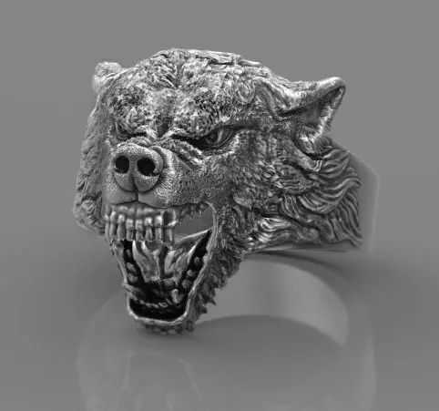 The head of the wolf is made in the form of a ring. The model is solid and available in .stl and .obj formats. 3 ring files are available for download (ring inner diameter, mm): 16, 18, 20.