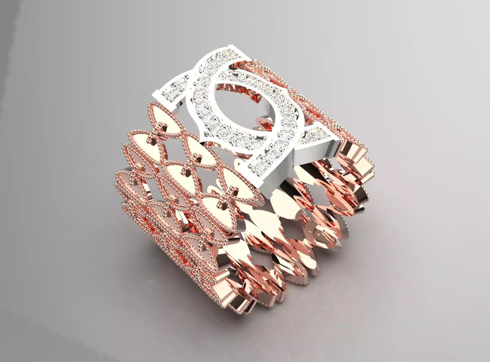 - Delicate and proportionate stirrup: The stirrup of the ring is made of rose gold