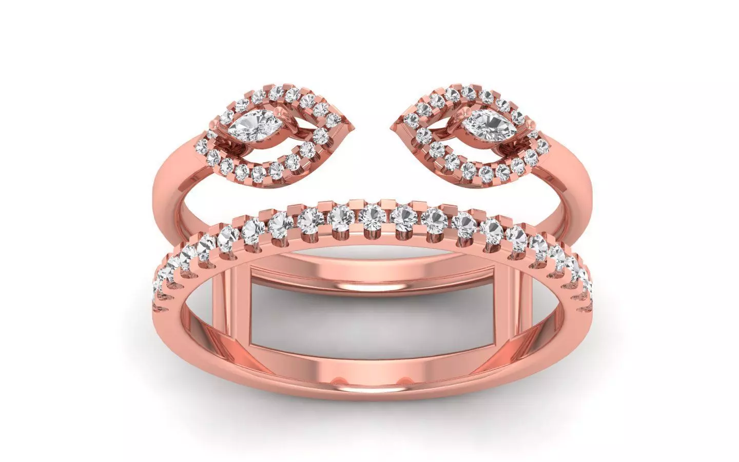 Marquise Diamond Double Band Ring 3dm STL OBJ Renders Details 3D print model