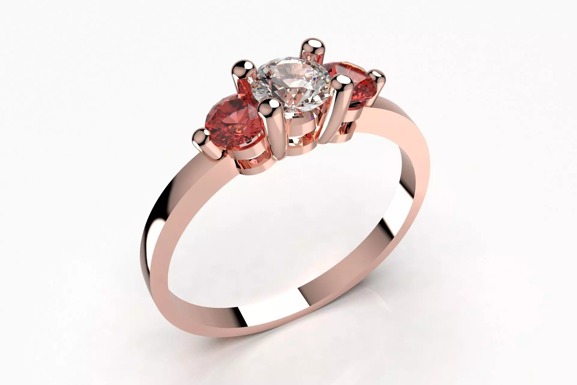 Women Trilogy Ring For Wedding Or For Gift With Ruby Gemstone Can Customize - CAD 08 3D Model