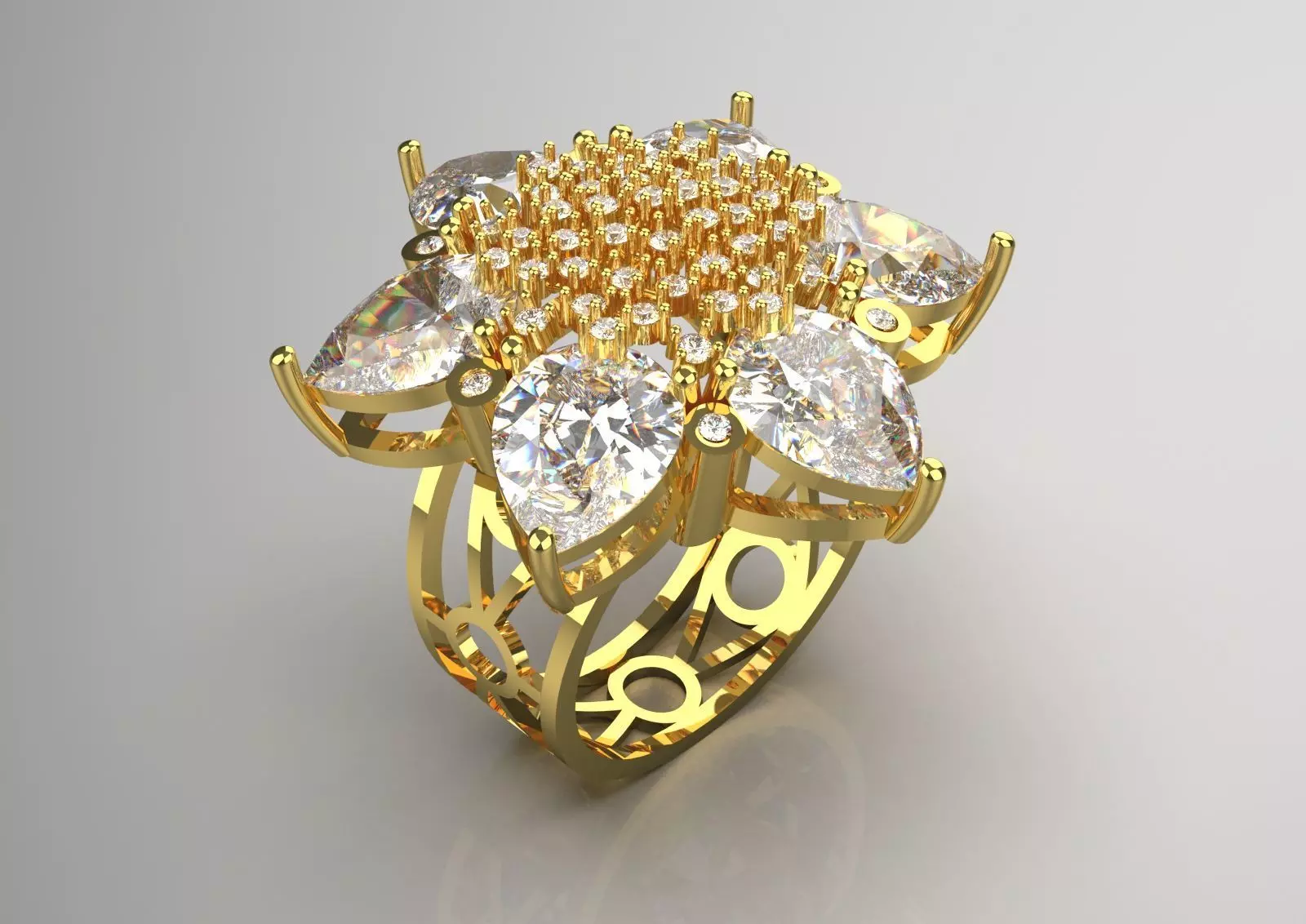 #clusterring #statementring #yellowgold #diamondring #pearshapediamond #pavediamonds #floralring #luxurydesign #gemstonering #jr00180