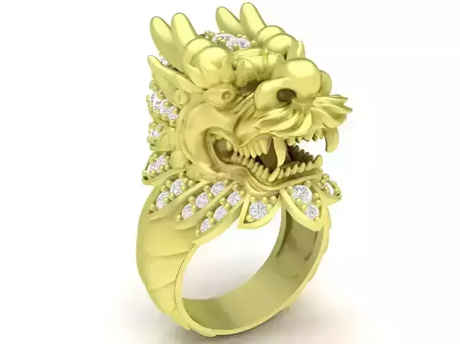 This 3D model features a luxurious dragon head men’s ring designed with exceptional detail, ideal for high-end jewelry production. The ring showcases a powerful dragon motif with sharp facial contours, layered scales, and dynamic horns that bring the mythical creature to life. Multiple gemstones are set around the dragon’s mane, adding brilliance and enhancing the overall depth of the design. The band is sculpted to maintain balance, comfort, and structural durability for casting in gold, silver, or platinum.