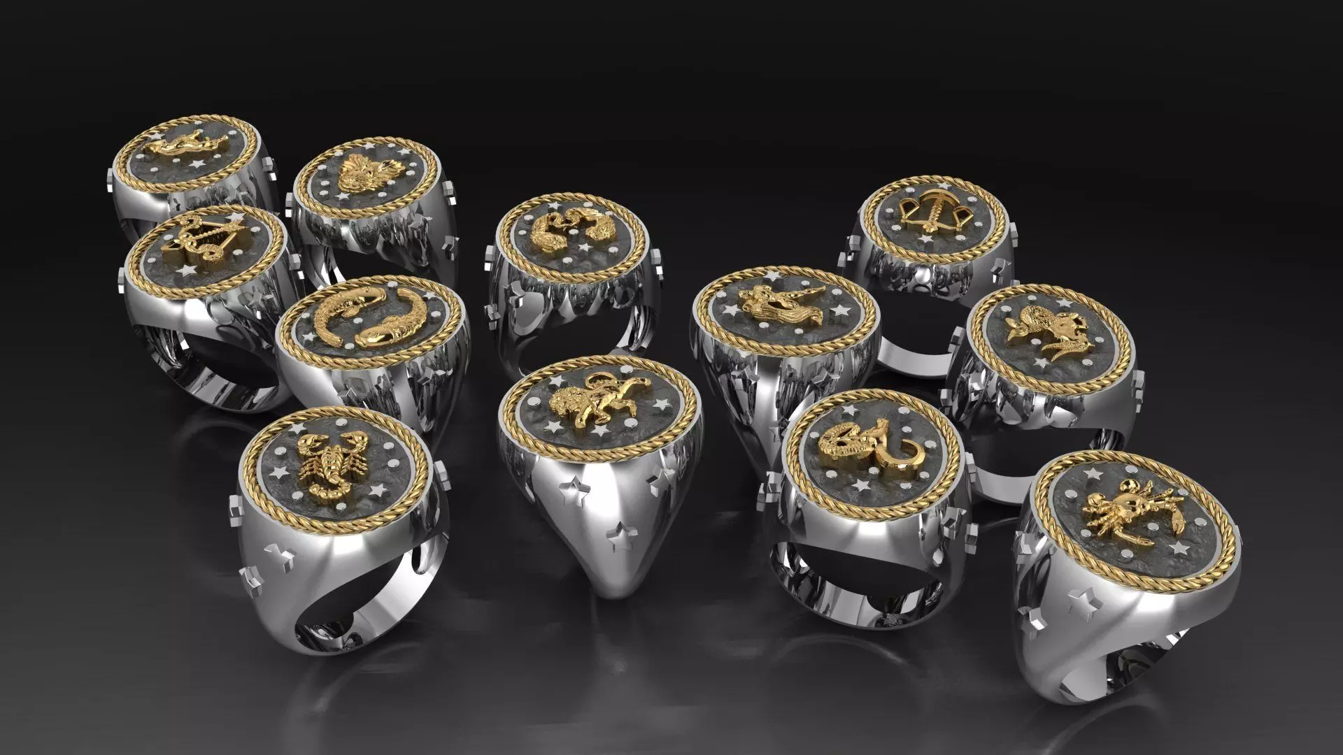 Zodiac Horoscope Rings Set Pack 3D print model