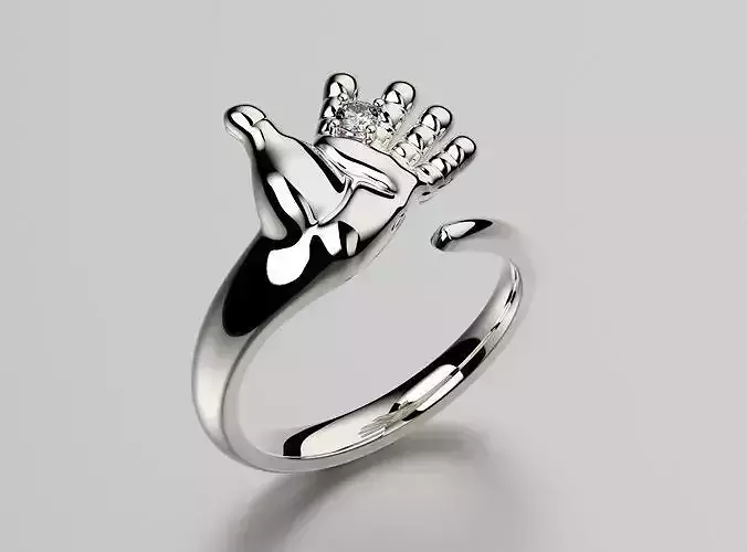 Print Ready 3D Model of hand shaped ring with white or yelow gold.