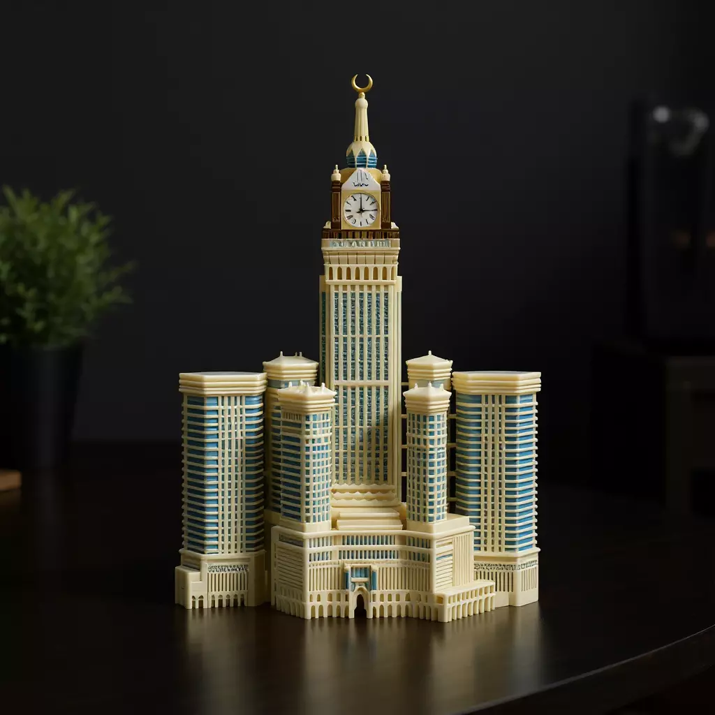 تصميم ثلاثي الأبعاد لبرج الساعة الملكي في مكة (أبراج البيت):نموذج ثلاثي الأبعاد دقيق ومفصل لبرج الساعة الملكي الشهير في مكة المكرمة، أحد أبرز المعالم المعمارية في العالم الإسلامي، والذي يجمع بين الحداثة والعراقة في تصميم واحد مهيب.تم إعداد هذا النموذج خصيصًا للطباعة الثلاثية الأبعاد، حيث يمكن إنتاجه بأحجام مختلفة باستخدام الطابعات المتنوعة، كما يمكن توظيفه في تطبيقات الحفر بالليزر أو البلازما لإنتاج مجسمات واقعية تُبرز روعة التصميم الهندسي للبرج وساعة مكة العملاقة.