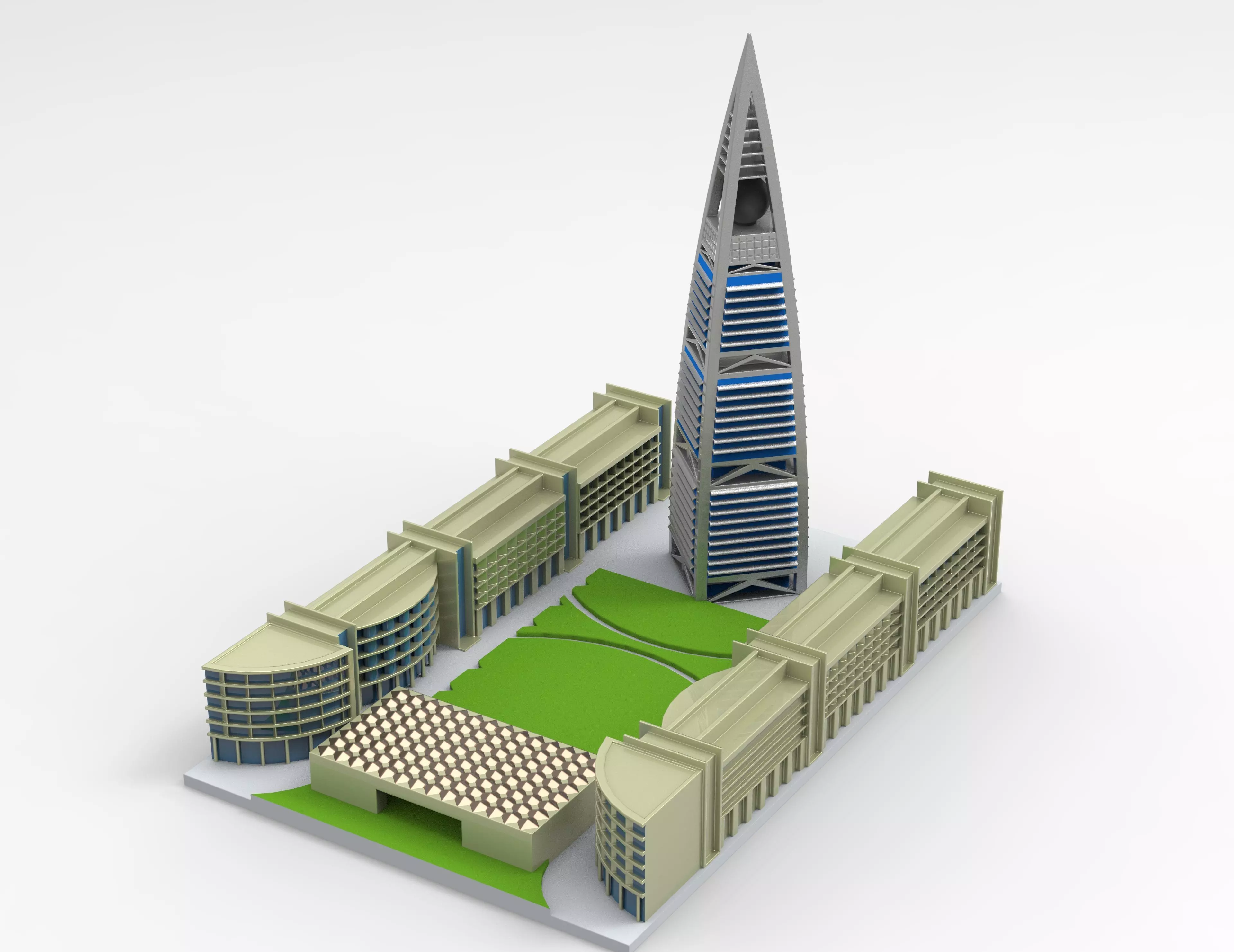 English Description:A highly detailed and realistic 3D model of the iconic Al Faisaliah Tower in Riyadh — one of the most distinctive architectural landmarks in Saudi Arabia, known for its modern triangular structure and its famous glass sphere crowning the top.