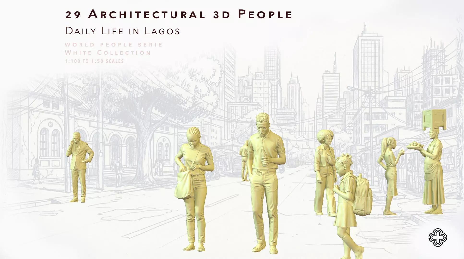 Bring authenticity and cultural diversity to your architectural models with the Daily Life in Lagos pack. Part of the World People series, this original set of 29 architectural figures captures the vibrant energy of contemporary African cities. It features a variety of distinctive silhouettes: men in boubous or Western suits, women in traditional or modern outfits, street vendors carrying trays, and active passersby. It is the ideal kit to populate your markets, public squares, stations and urban planning projects set on the African continent or in multicultural contexts.