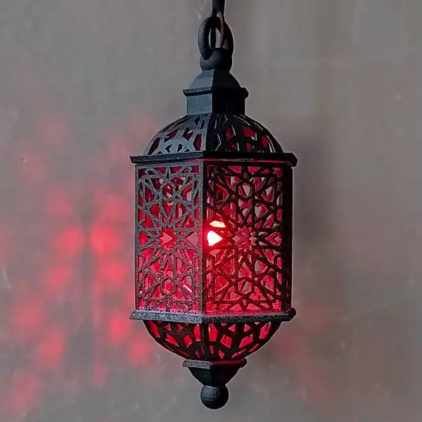 This 3D model of an Arabian hanging lantern is inspired by traditional lanterns from the Middle East and Morocco, featuring striking geometric patterns and a classic design. Its elegant proportions and ornamental structure make it ideal for architectural visualization, interior and exterior decoration, historical or Middle Eastern settings, dioramas, dollhouses, ambient lighting... Furthermore, its open geometric pattern allows natural light to pass through, creating attractive shadow and light effects when combined with LEDs or interior lighting in renderings.