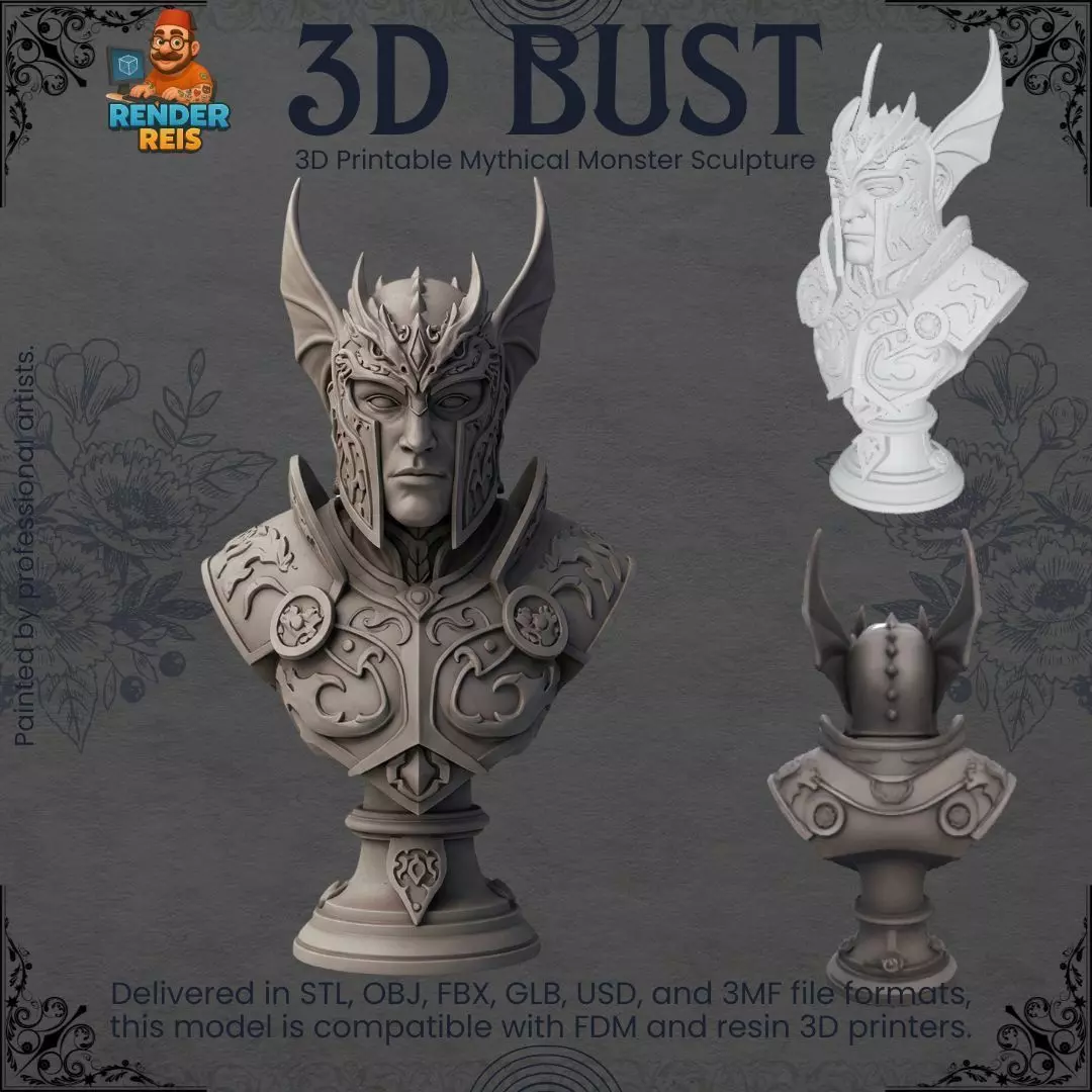 Bring strength and valor into your space with this highly detailed 3D printable armored fantasy warrior bust. Featuring intricate armor engravings, a determined facial expression, and possibly mythical helmet decorations like horns or dragon wings, this model radiates power and legend.