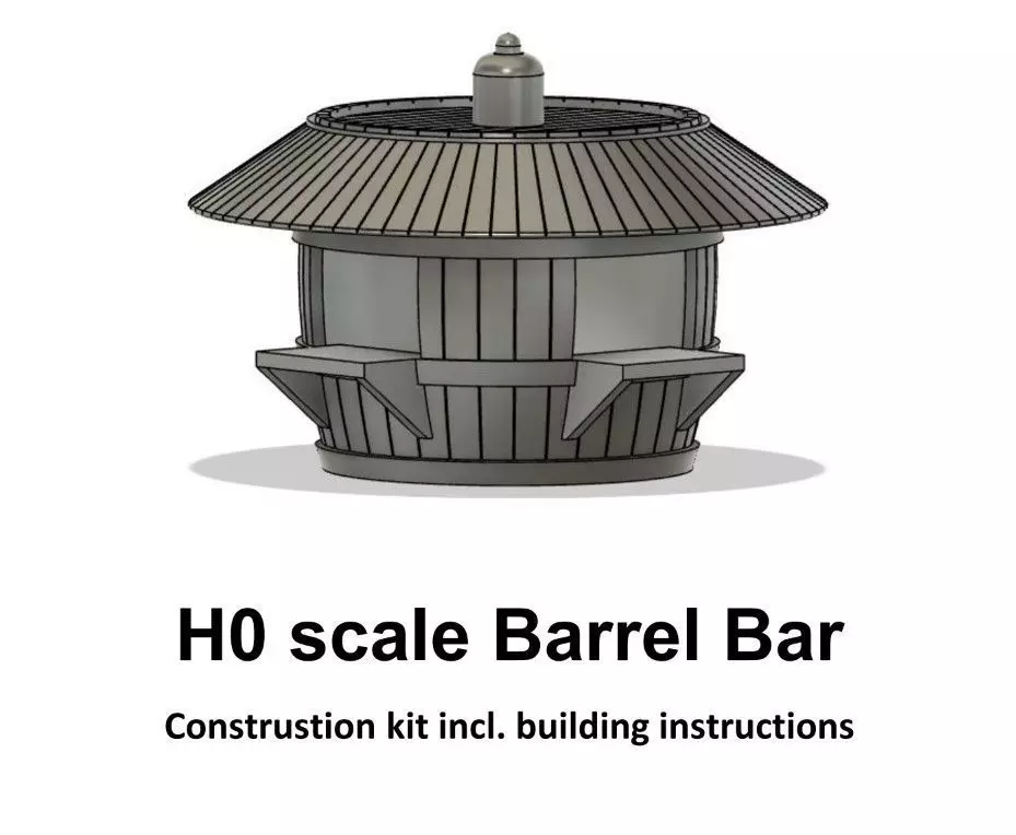 This bar in the style of a large barrel is the eye-catcher at any fair or festival. To make it easier to paint the interior, the model consists of two parts that are printed separately.