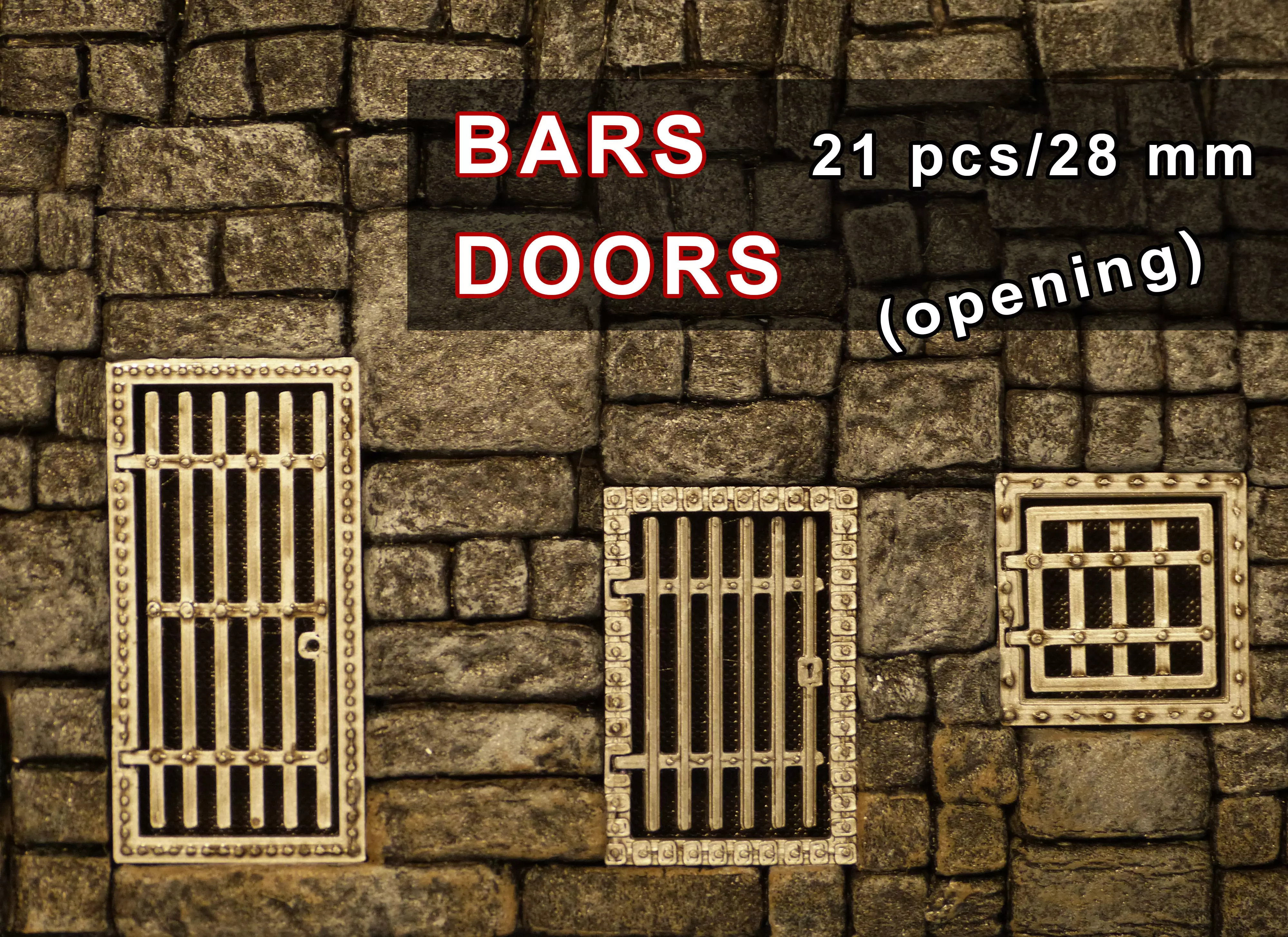 Hello i want offer you this Bars doors set for medieval times.Set contains 21 types of bars doors. Size is for 28 mm figures, you can change it.Every bars doors was tested printed on Ender 3 pro from PLA. 11 pcs of bars doors are opening, you can use wire (0.65 mm diameter) for hinge. Setting for this printing is part of files.